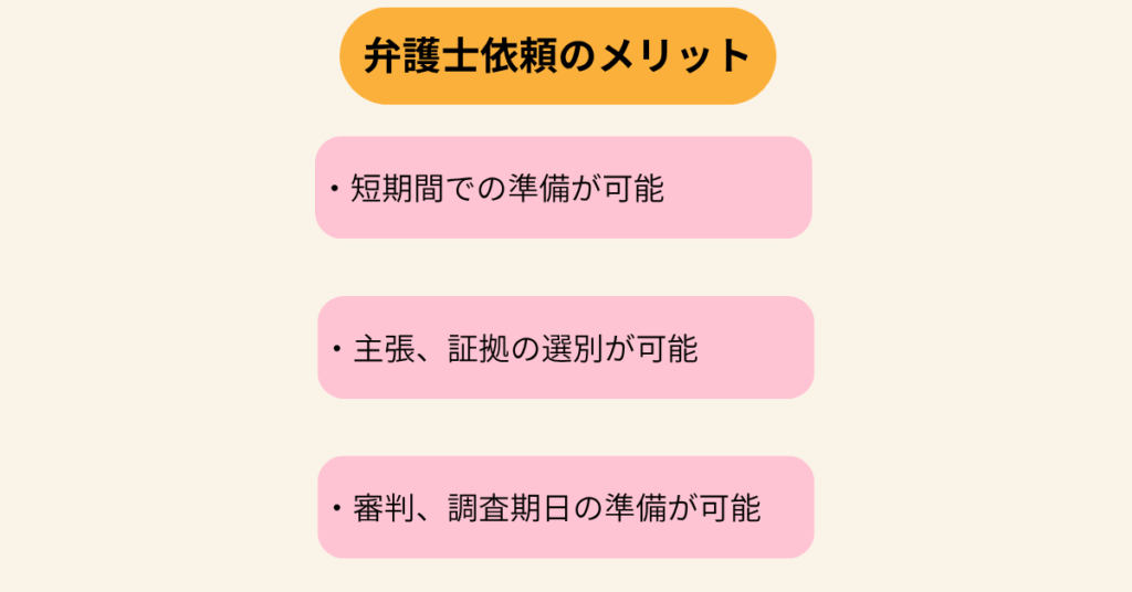弁護士が代理人であれば、審判期日、調査期日に立ち会いますので、弁護士が補足説明をすることもできますし、事前に想定される質問について準備をすることも可能です。