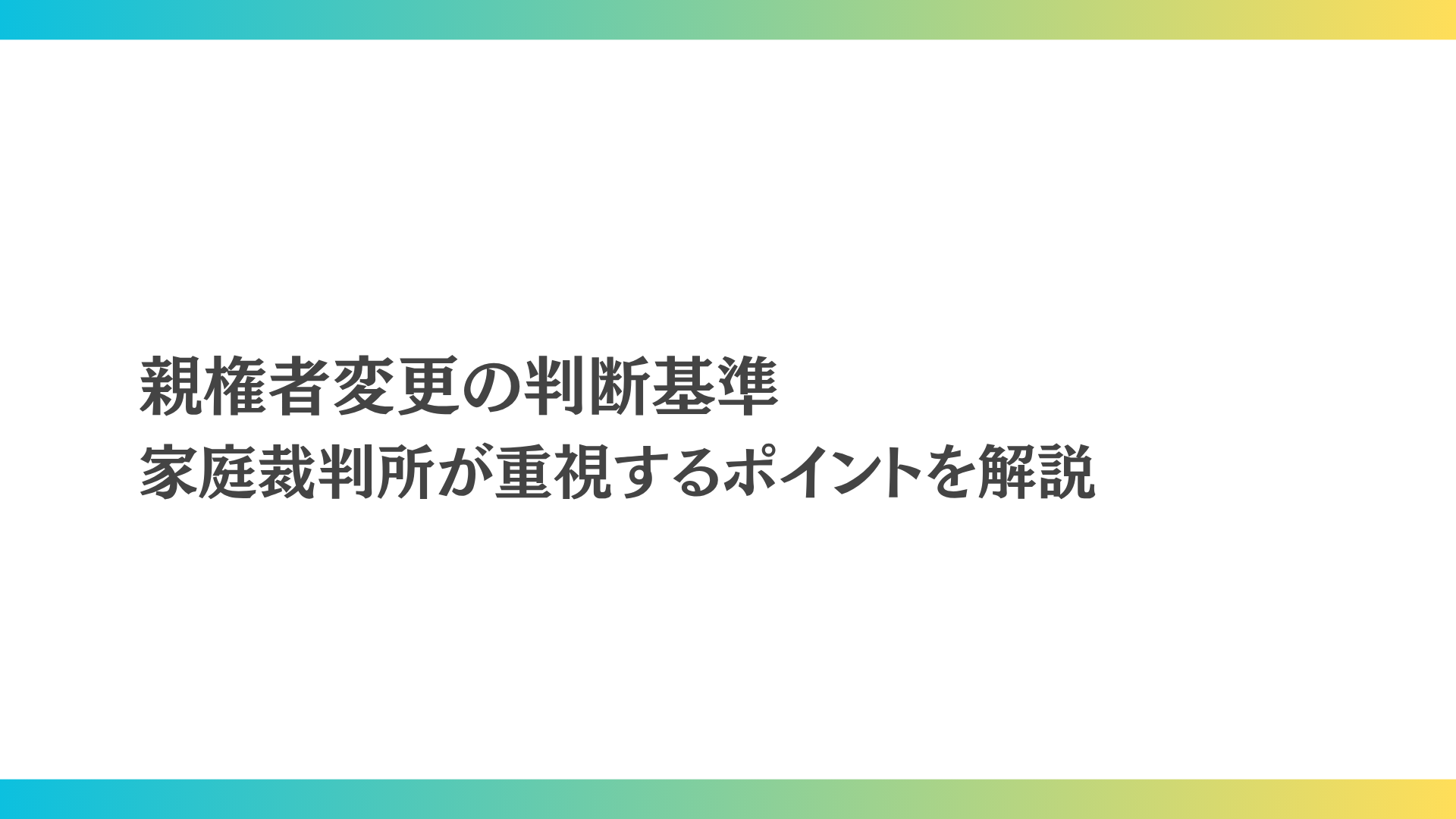 親権者変更の判断基準|家庭裁判所が重視するポイントを解説